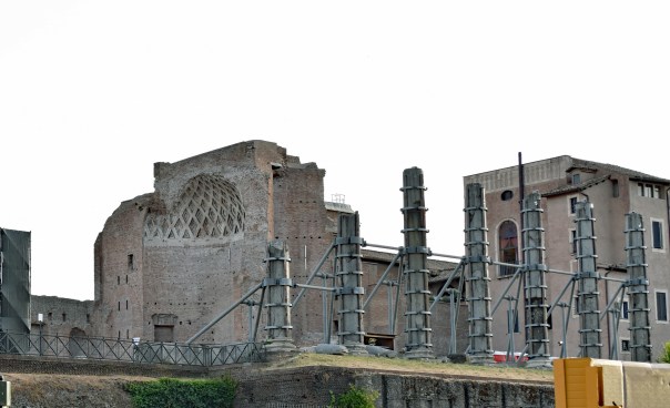 The Coliseum is the most visible part of Rome’s ancient city center. Unlike the Parthenon on the Acropolis that dominates Athen’s skyline, the Coliseum sits in a valley between Palatine Hill (the hill of the Imperial palaces), Caelian Hill (to the south), and, Esquiline Hill (to the north). It is; however, the most recognizable structure in Rome, and roadways border three sides of the structure.