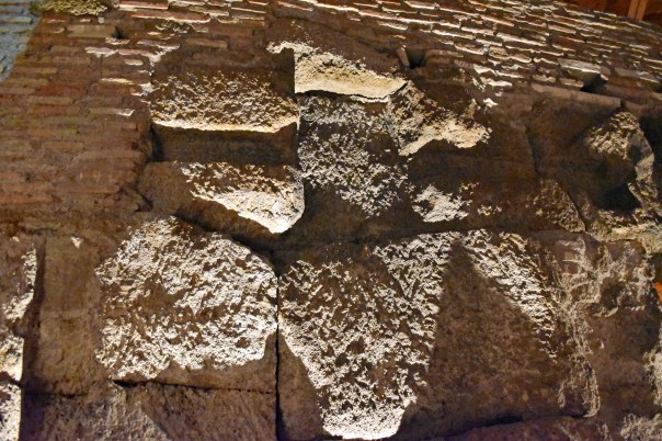 Many may think that the holes that are evident around the Coliseum are from bullets and shells during World War II. That is not true. The joints between the blocks were reinforced with a metal clip. Those pieces of metal became highly valued for tools and weapons and were dug out. In the same way that abandoned houses are raided for their copper, today, the Coliseum was raided for its metal.