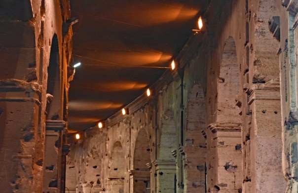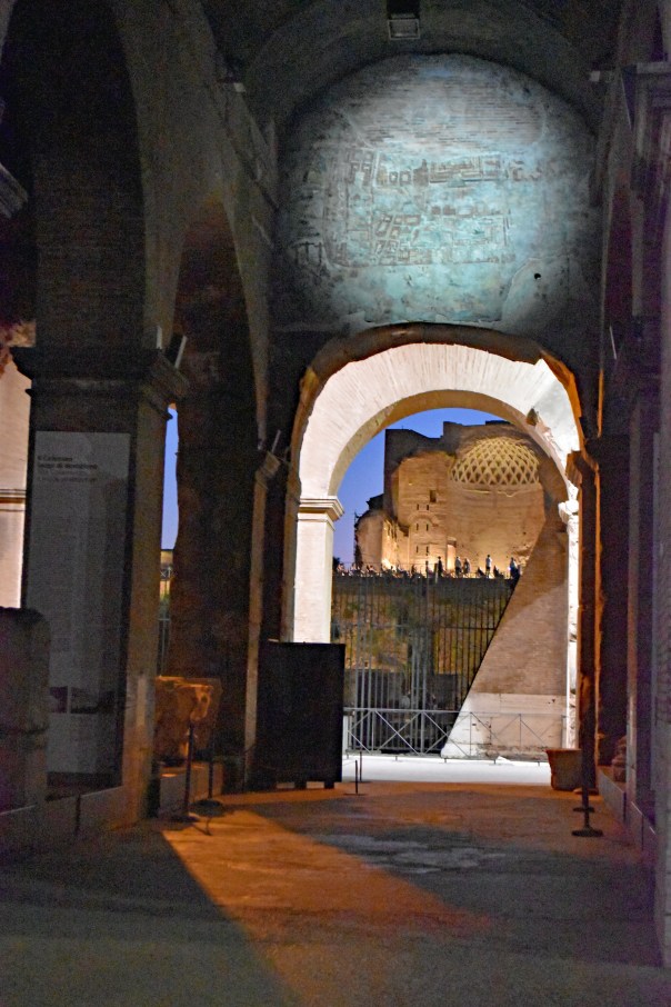 The night tour was a great way to explore the Coliseum as it was cooler. It also revealed subtleties in the structure that might not have been apparent in daylight. One thing that is not subtle is the holes in the structure and the damage that is visible as one walks around or through it.