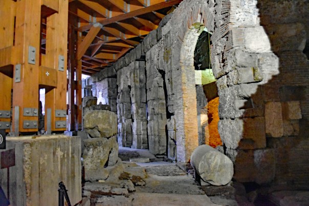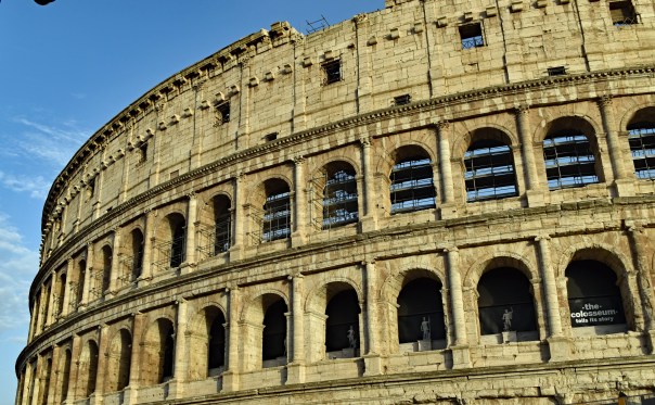Many may think that the holes that are evident around the Coliseum are from bullets and shells during World War II. That is not true. The joints between the blocks were reinforced with a metal clip. Those pieces of metal became highly valued for tools and weapons and were dug out. In the same way that abandoned houses are raided for their copper, today, the Coliseum was raided for its metal.