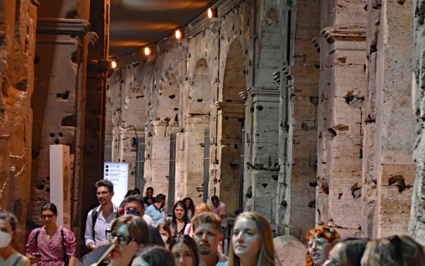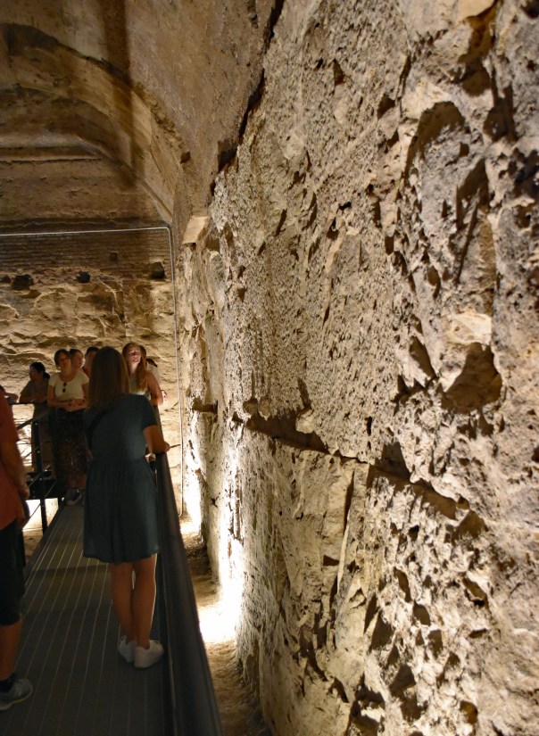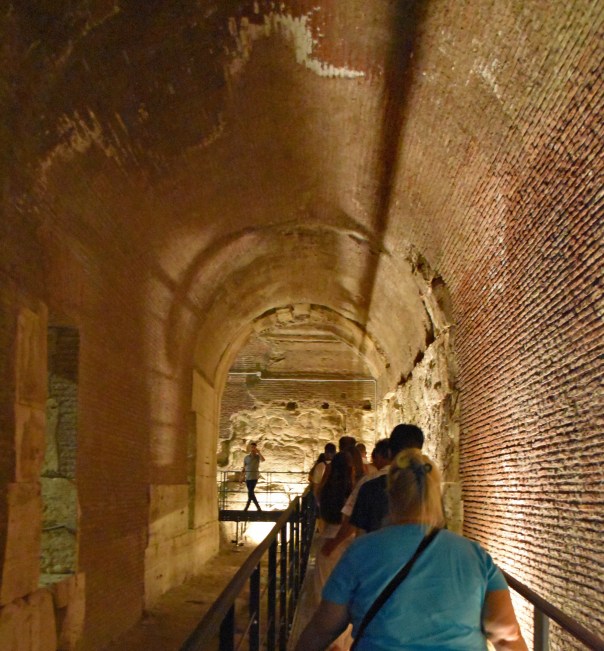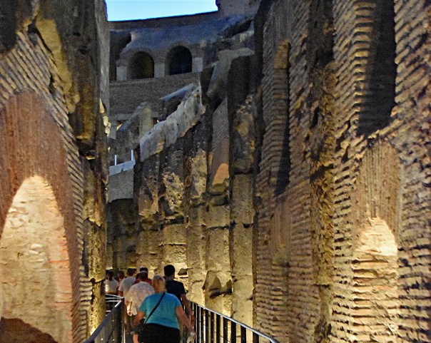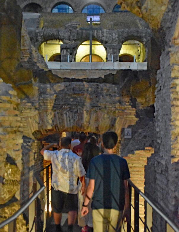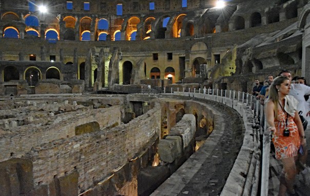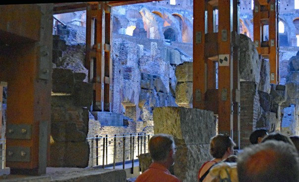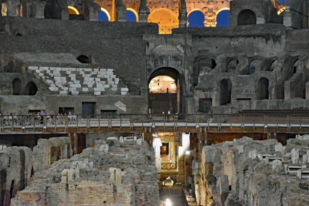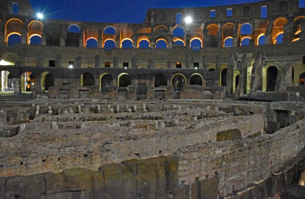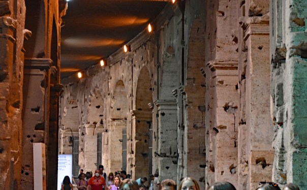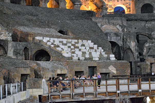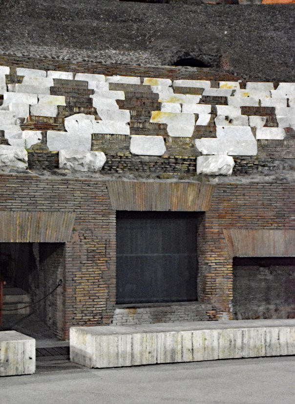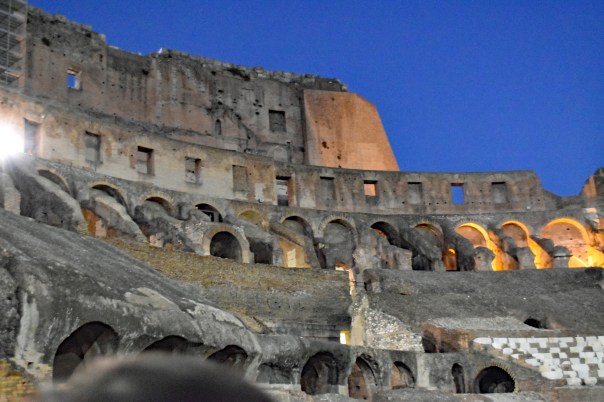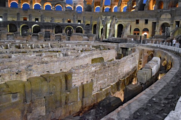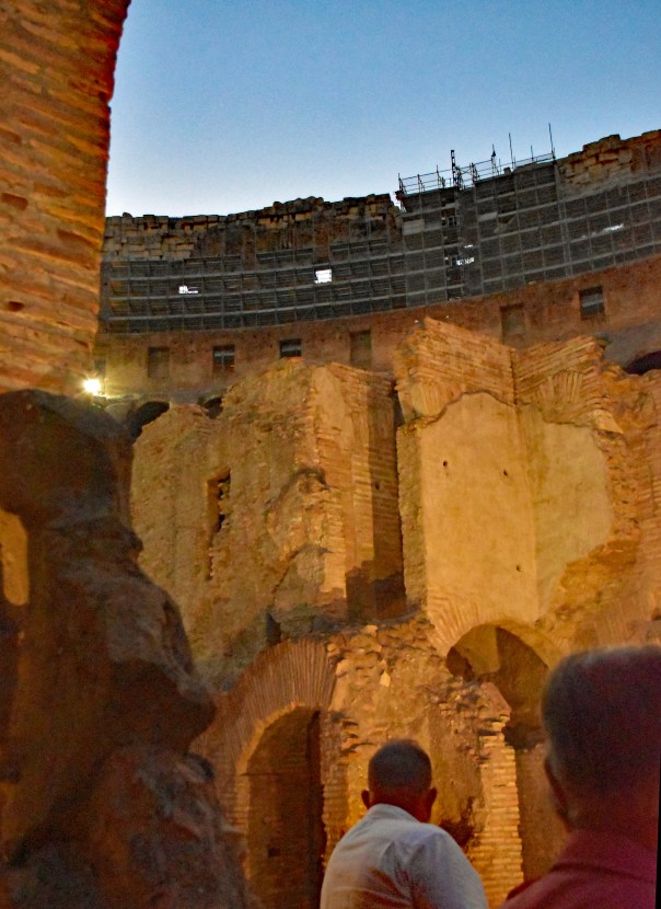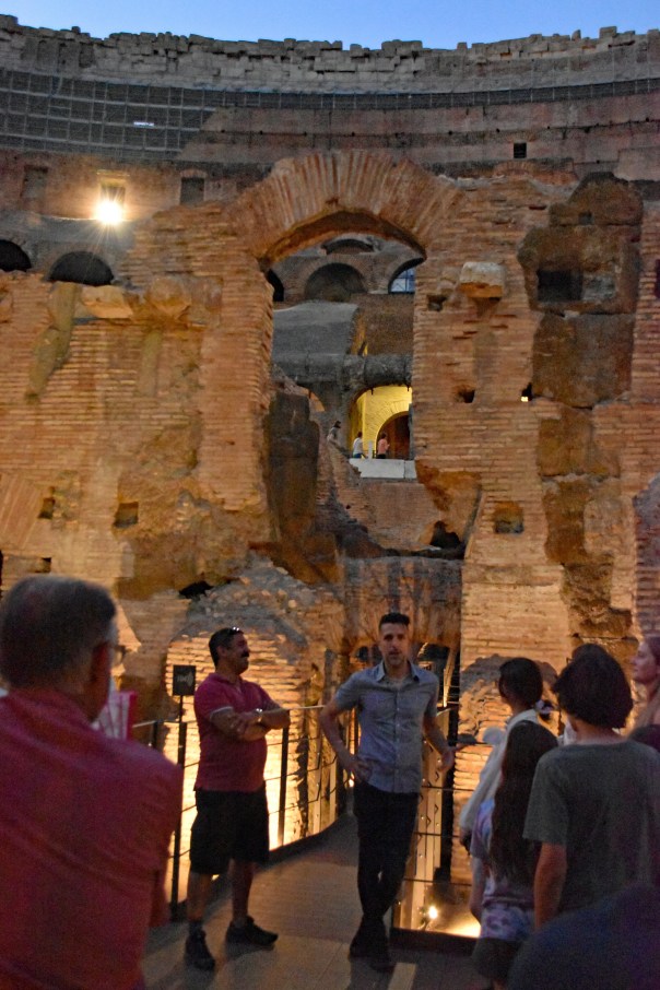 The night tour was a great way to explore the Coliseum as it was cooler. It also revealed subtleties in the structure that might not have been apparent in daylight. One thing that is not subtle is the holes in the structure and the damage that is visible as one walks around or through it.