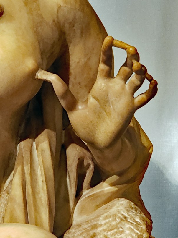 This sculpture of David by Bernini Lorenzo originally had the back heel embedded in a wall for support. They had to fashion a heel when put on this display.