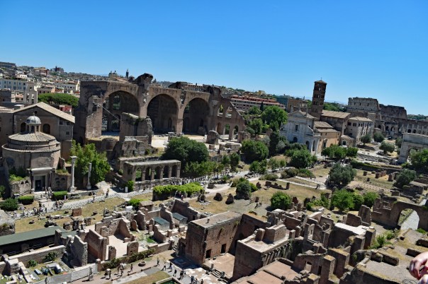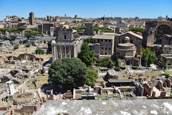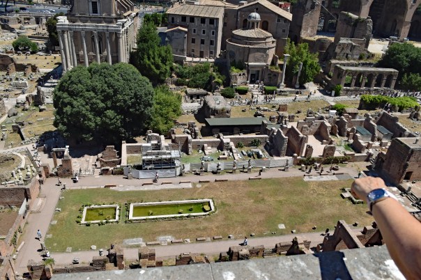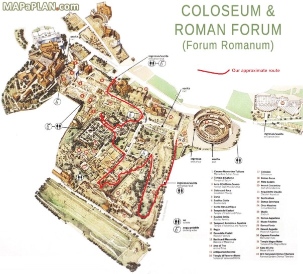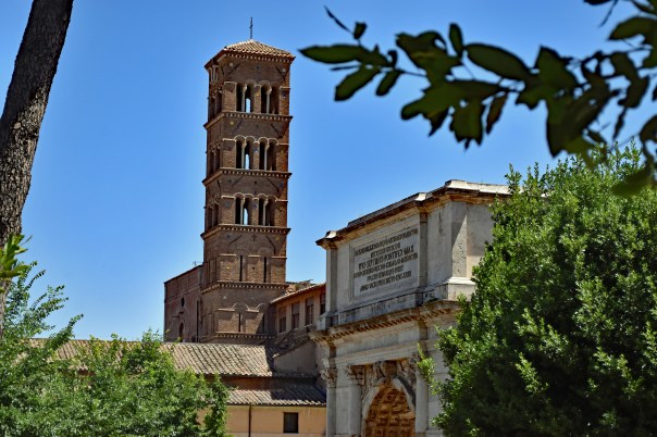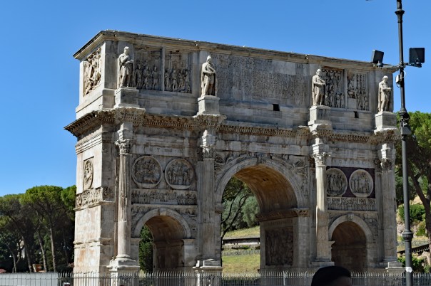 Our first full day in Rome began with a walking tour of the ancient city of Rome. We walked from our hotel located about three blocks from the Coliseum and crossed to the southwest side to meet the guide at the Arch of Constantine. The tour was to include a daytime tour of the Coliseum; however, fortunately, that didn’t work out. We weren’t fully aware of how much walking would be involved on this tour and Rome was in a heat wave. As it was, we did not spend time down in the Forum area because we were overheated and exhausted.