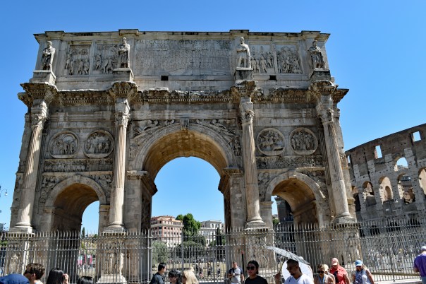 While structures existed in the area of Palatine Hill and the Roman Forum, most of the structures were built (or rebuilt) during the Age of the Roman Empire. The Arch of Constantine was dedicated in 315 A.D. as tribute to a victory of Constantine the Great. It was built near the Coliseum that had been completed almost 250 years prior.
