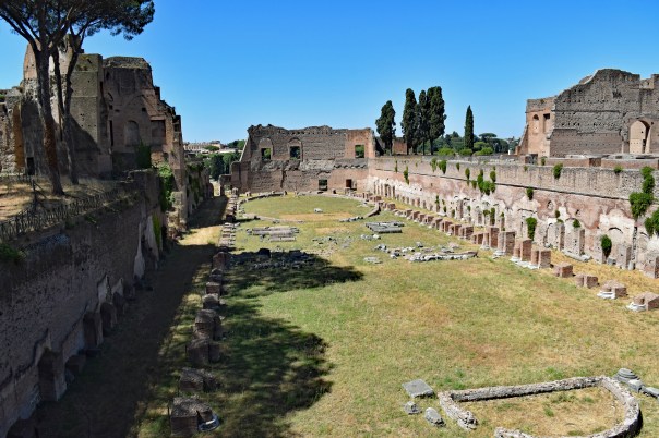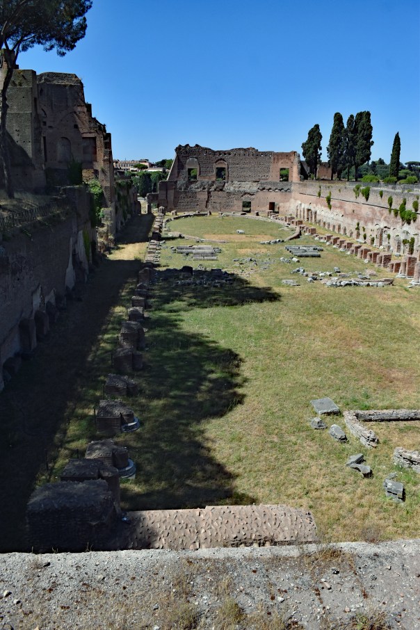 Our introduction to Roman chariot and horse racing is likely from the movie Ben Hur. The real place for chariot and horse racing is more like a drag strip. Circus Maximus sits just below the southern slope of Palatine Hill and the Imperial Palace offered special rooms to oversee the area. They seem to be the Roman version of box seats.